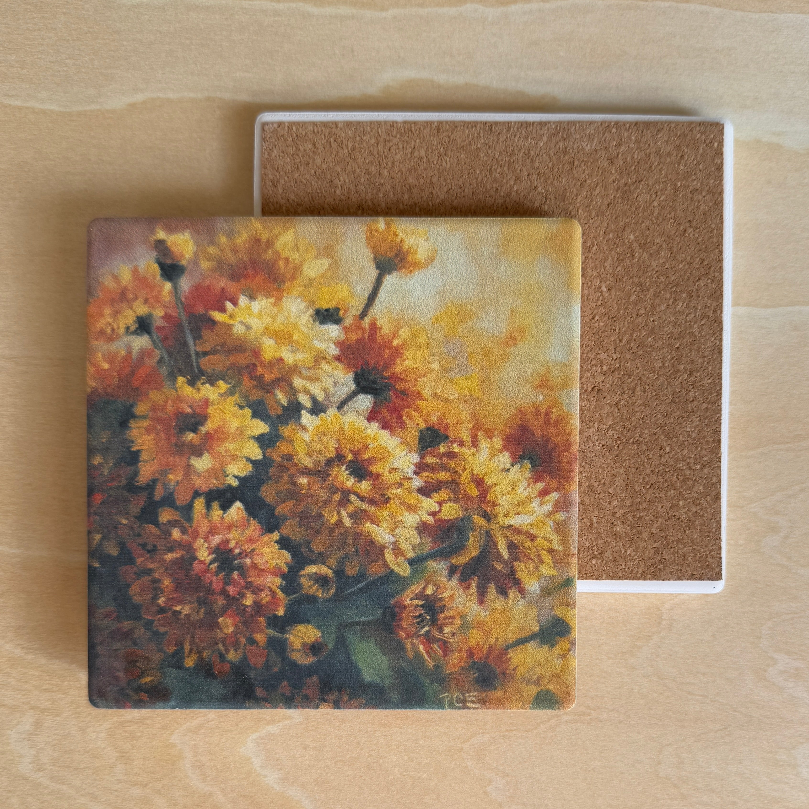 A 4.25" square ceramic coaster featuring Patti Clancy’s original artwork. Matte finish, 100% absorbent, with a cork backing to protect surfaces. Sold individually (or sets of 4)— great on its own or for mixing and matching with other designs.