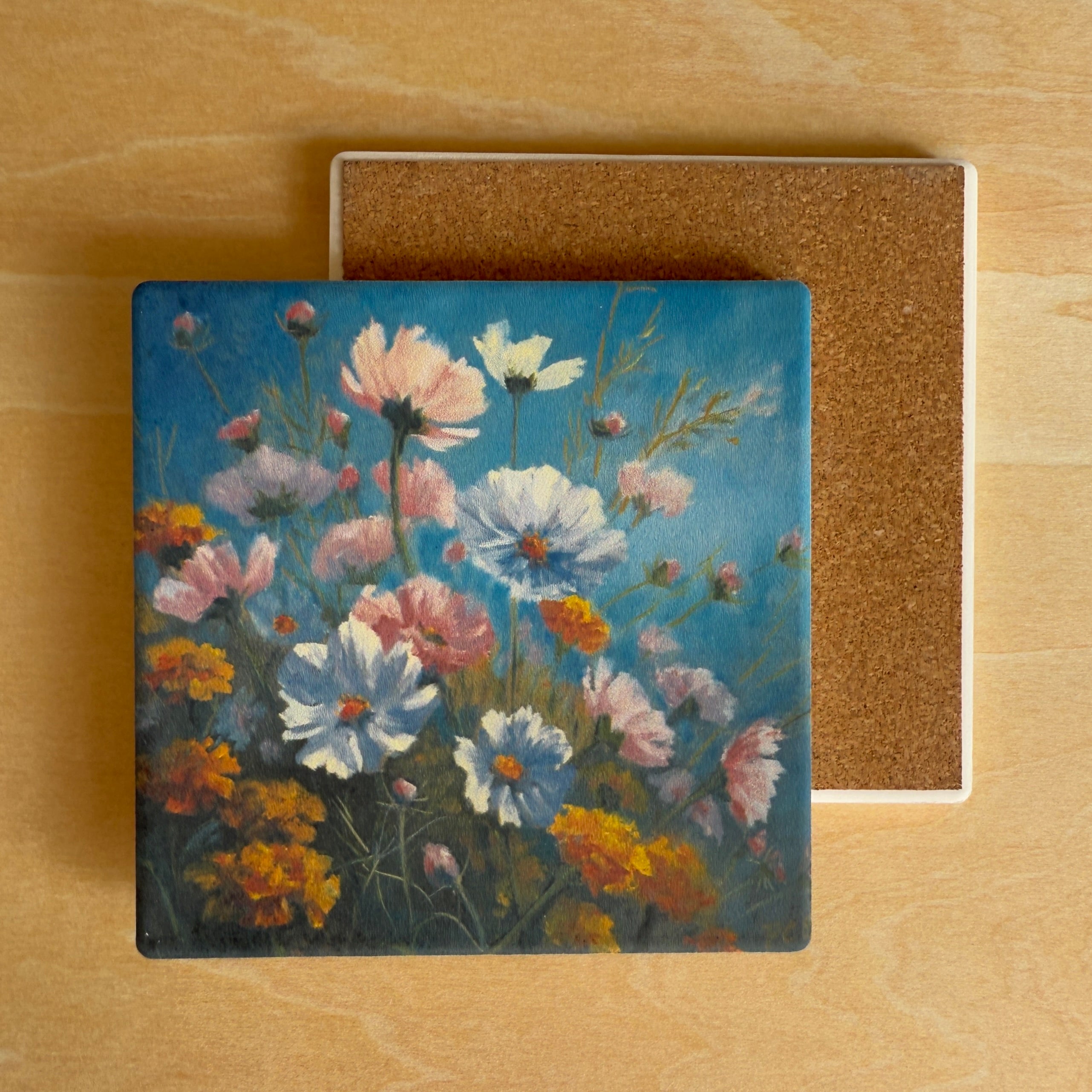A 4.25" square ceramic coaster featuring Patti Clancy’s original artwork. Matte finish, 100% absorbent, with a cork backing to protect surfaces. Sold individually (or sets of 4) — great on its own or for mixing and matching with other designs.