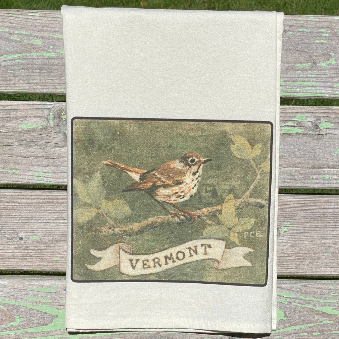 NEW State Bird Tea Towel - VT Hermit Thrush