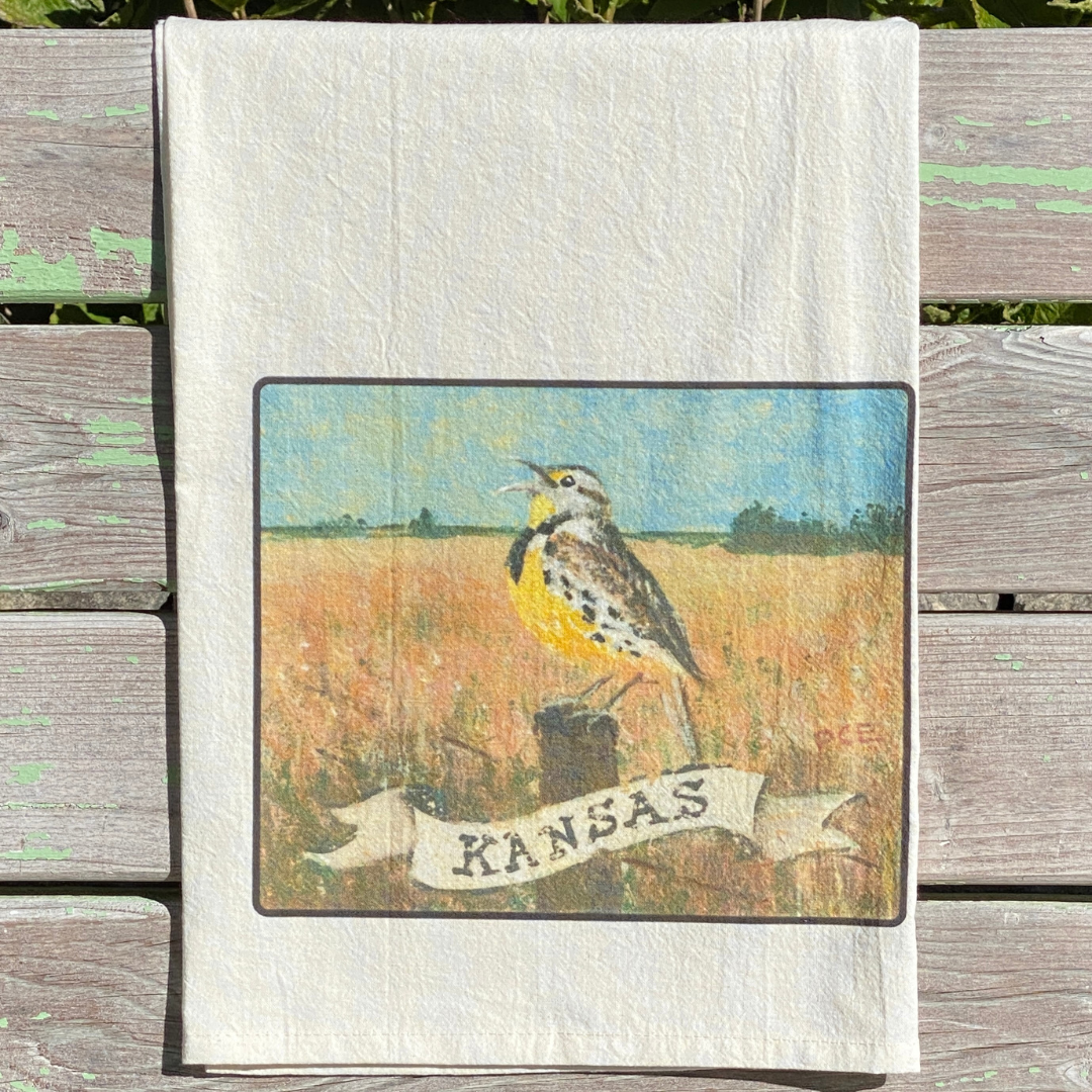 NEW State Bird Tea Towel - KS Western Meadowlark